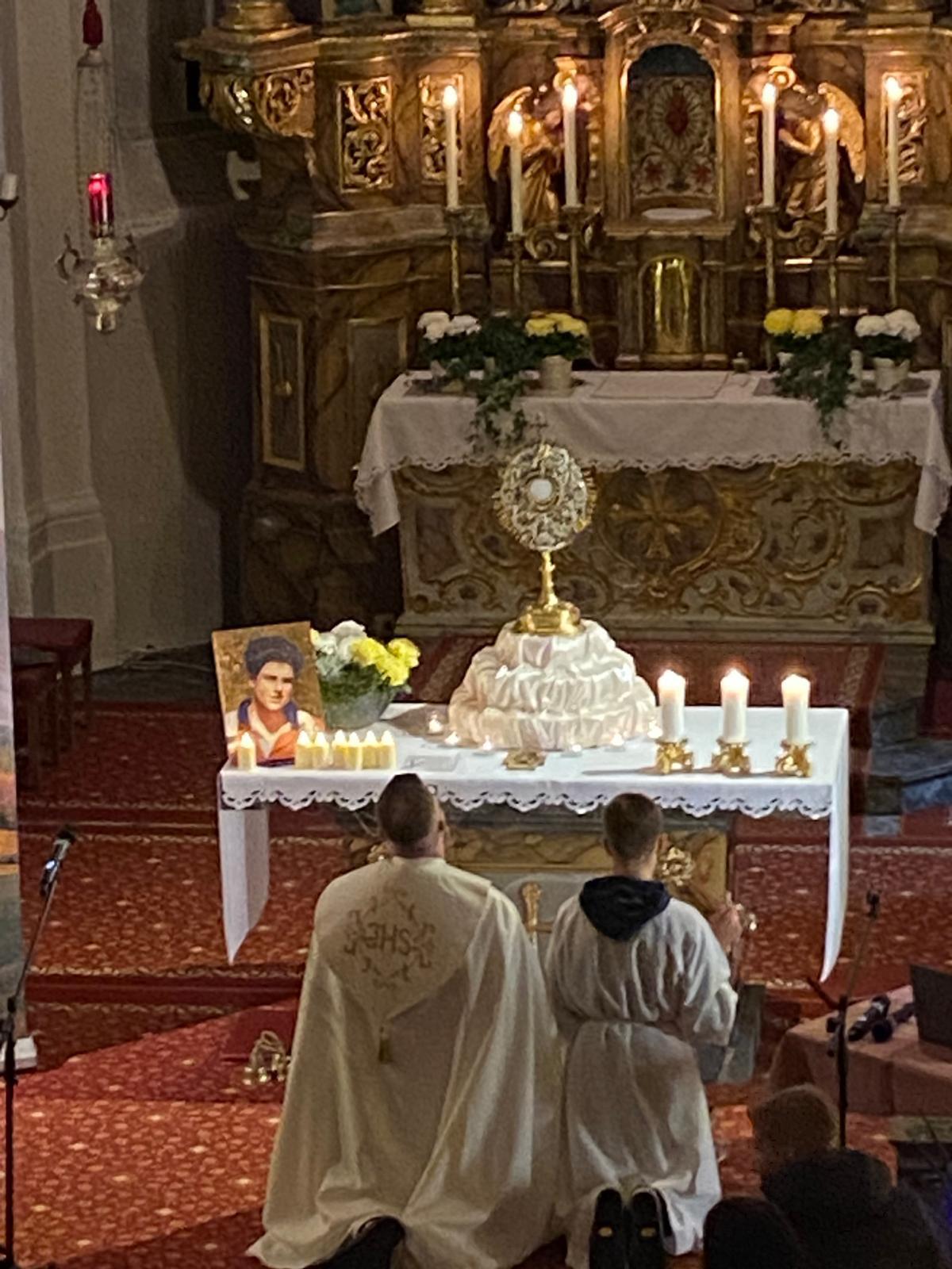 Den Anfang machte das Kindertheater über den heiligen Carlo Acutis. Mit großem Interesse lernten wir Carlo zuerst kennen und staunten nicht nur über seinen unversehrten Leib, sondern auch über sein großes Herz und seinen lebendigen Glauben. Mit schwungvollen Liedern wurde die Geschichte umrahmt. Als besonderen Höhepunkt durften wir alle am Ende des Theaters in der Heiligen Eucharistie Gott unseren Herrn in unserer Mitte begrüßen und anbeten.