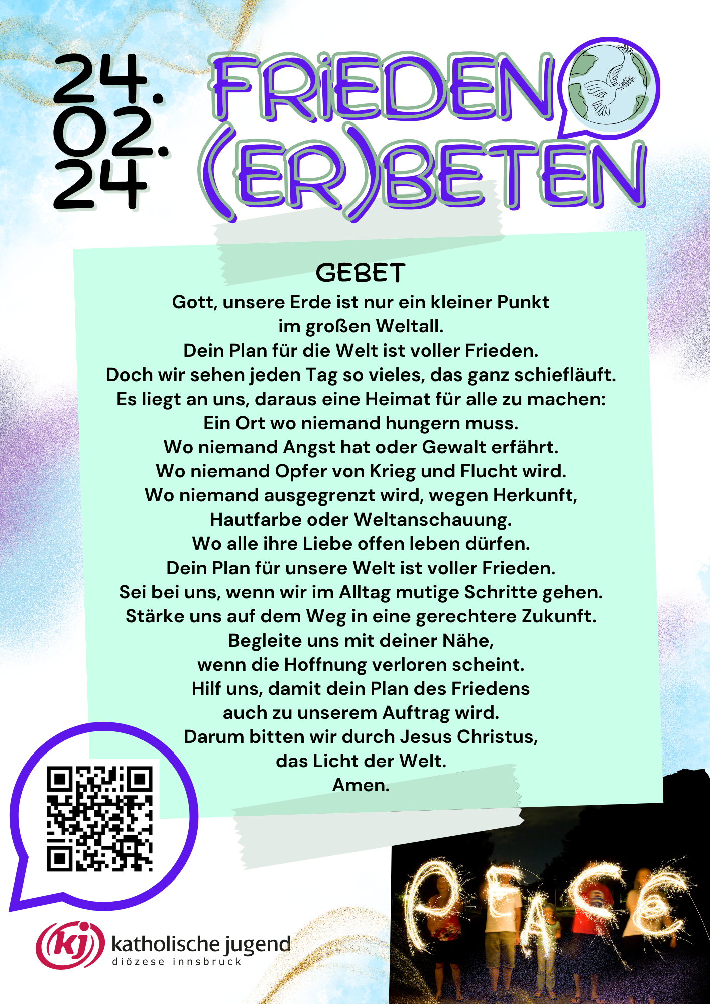 An so vielen Orten wie möglich soll am Samstag, den 24. Februar - dem Tag an dem vor zwei Jahren der Krieg in der Ukraine begonnen hat - für den Frieden gebetet, gesungen und der Opfer gedacht werden. Als verbindendes Element: Alle beten dasselbe Gebet!